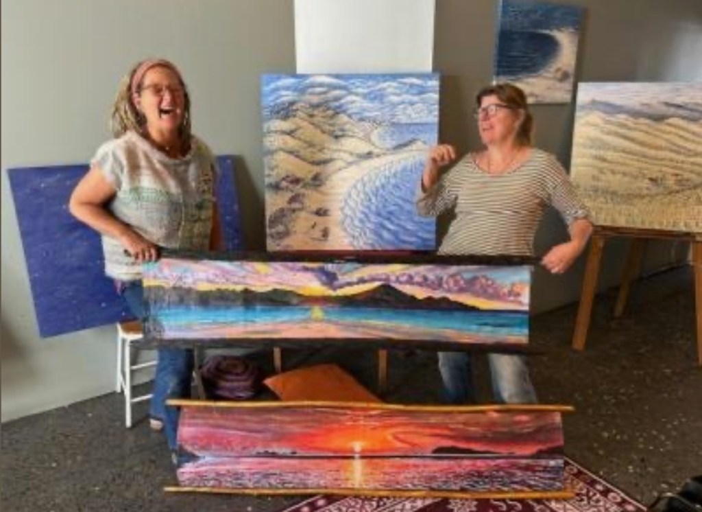 Cindy’s paintings have been exhibited widely from Lopdell House in Titirangi, to many Coromandel and Auckland galleries. She has also exhibited in a Fletcher-Challenge ceramic exhibition at the Auckland Museum. For nineteen years she illustrated a local gardening calendar, and she has also illustrated a children’s book called “ Casey the Corosaur Comes to Coromandel.”